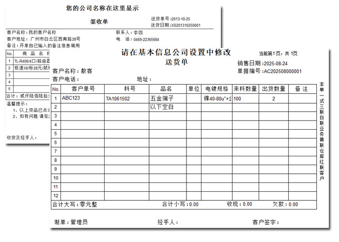 送貨單能根據客戶需求自由設計;